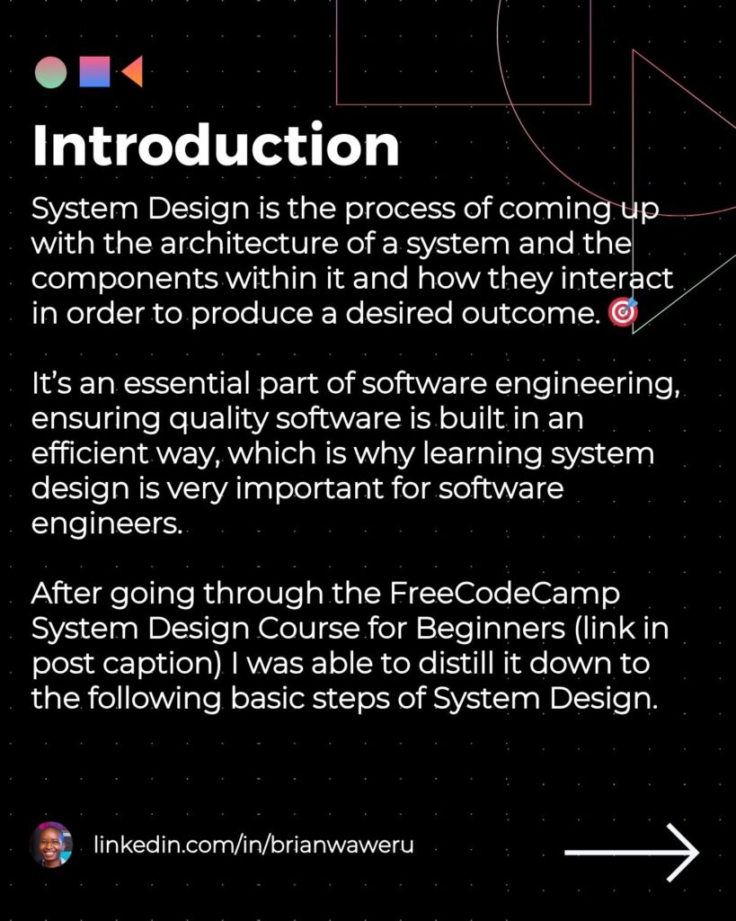 – freeCodeCamp‘s System Design Course for Beginners: https://lnkd.in/dWyVHrkd